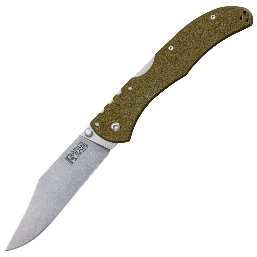 Designed to ride all day in your pocket or waistband, the Range Boss is light and easy to carry. It doesn't take up much room and can be carried virtually unnoticed until you snap it open. The Range Boss's clip point blade is flat ground to a thin edge that is so sharp it will astonish you. It is stone washed to resist rust, and its versatility makes it ideal for any outdoor pursuit. The glass reinforced nylon handle is textured with a stippled pattern for a good grip, and it features Cold Steels renowned Tri-Ad® lock for superlative strength.