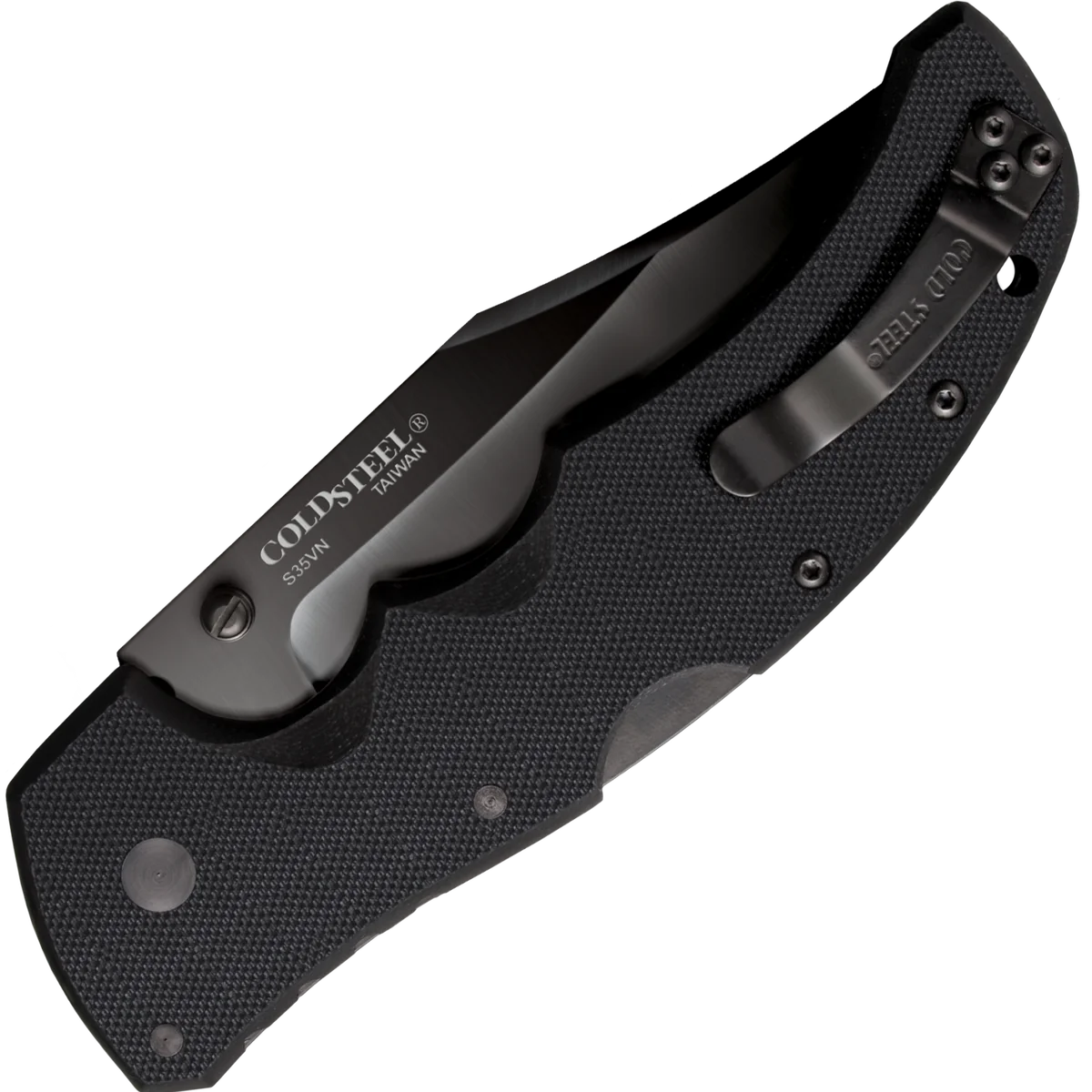 - Folding knife made from S35VN stainless steel with a DLC coating in a clip point style. Black textured G10 handles with a reversible pocket clip and lanyard hole, uses cold steel's tri-ad locking mechanism.