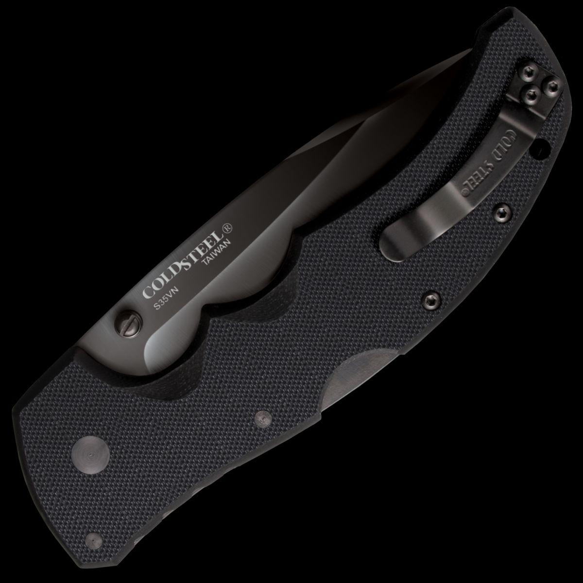- Folding knife made from S35VN stainless steel with a DLC coating in a spear point style. Black textured G10 handles with a reversible pocket clip and lanyard hole, uses cold steel's tri-ad locking mechanism.