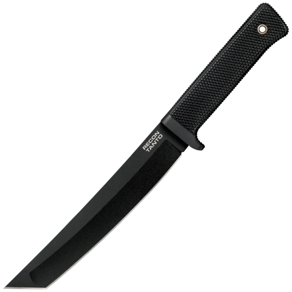 The Cold Steel Recon Tanto was designed for today's modern warriors. A much loved and appreciated knife by the Military and Law Enforcement Special Units, it was developed to withstand the harshest abuse and the toughest possible conditions. The signature Cold Steel Tanto point is specially reinforced to stay sharp even when encountering modern body armor – tested right in their HQ by punching through 55-gallon steel drums! This classic design is now available with SK-5 high carbon steel. It is the Japanese equivalent of American 1080, a high carbon steel with carbon between 0.75%-0.85% and 0.60%-0.90% manganese. As quenched, it has a hardness near Rc 65 and produces a mixture of carbon rich martensite with some small undissolved carbides. The excess carbide increases abrasion resistance and allows the steel to achieve an ideal balance of very good blade toughness with superior edge holding ability.