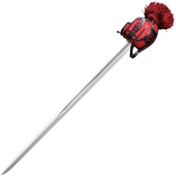 The traditional weapon of the highland clansman, this sword has sown fear into the hearts of Englishmen for centuries. Its long, two-edged blade and distinctive basket hilt, when combined with targe and dirk has proven to be more than a match for enemy soldiers on battlefields the world over. Now Cold Steel® has chosen to make our own replica of this famous weapon. Our double-edged blade is hand forged and beautifully polished with triple fullers. The stout basket hilt is made of blued steel with a wood grip covered in samé (ray skin) and decoratively wrapped in wire. Each broadsword will pass the stringent British Proof test and comes with a wood and leather scabbard that's complemented by blued steel chape and throat.