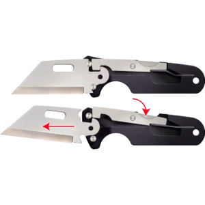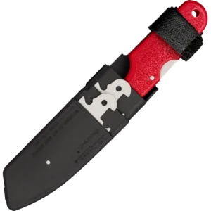 Our good friend, Tim Wells of Relentless Pursuit TV show fame was so impressed with our Click-N-Cut we said why don’t we make a Slock Master model so we did. It has Tim Wells’ signature red handle and his distinctive logo, and comes with three blades. There is a clip point blade, a serrated utility blade, and a caping blade that can prep a trophy in the blink of an eye. Exchanging a blade is easy. The handle has a lock bar release, similar to the release on a folding knife. When the lock bar is pressed the blade slides easily out. Keep the lock bar pressed and slide a new blade in and release the lock bar and the blade will “click” into place. The Click-N-Cut includes a belt sheath that will hold the knife with one of the blades installed and it has integral pockets for the two remaining extra blades.