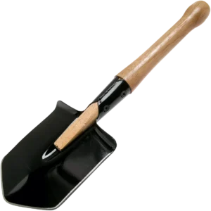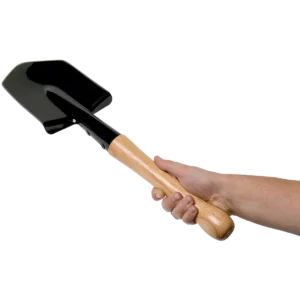 - This durable and effective shovel has a stout hardwood handle, a broad flat steel blade and 3 sharp edges.