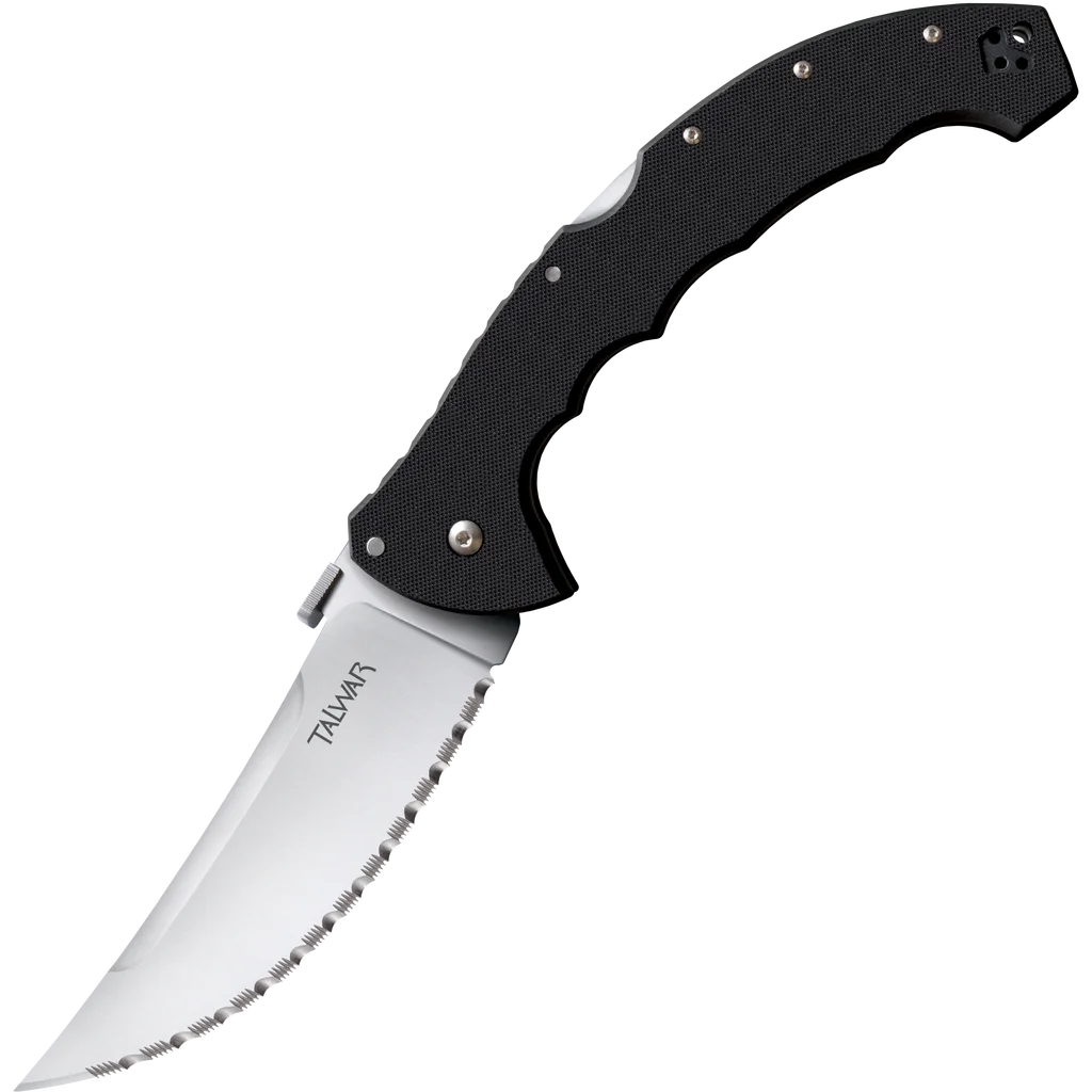 A design collaboration between Lynn C. Thompson and Andrew Demko, the Talwar packs an astonishing amount of cutting power into a thin and lightweight pocket knife. The Talwar folder boasts one of the widest blades available in the industry today. Made from S35VNsteel, and almost 2" wide, the blade is beautifully flat ground, with a continuously curved edge, offering cutting potential that has been previously unavailable in a folding knife. The Talwar’s textured, ergonomic pistol grip handle is made from premium G-10, with strategically placed integrated finger grooves for both comfort and safety. For added safety, each of our Talwar knives has our Tri-Ad® locking system; which has proven itself again and again to be the safest lock in the industry. The Talwar also comes equipped with Andrew Demko's revolutionary ambidextrous thumb plate.