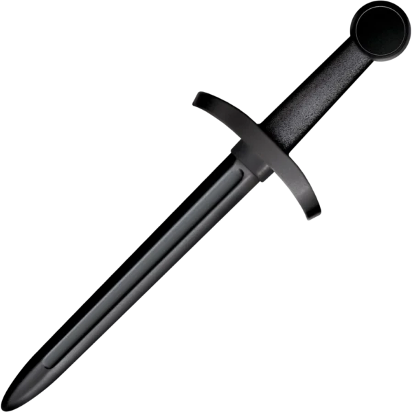 If your ultimate goal is to wield a sharp blade safely, you need to supplement your training with a tool that approximates the size, feel and heft of a blade, yet minimizes the possibility of causing injury to yourself or your training partner. This concept was implemented by many cultures, including the ancient Romans, who used wooden swords to train their Gladiators. Cold Steel's solution to these dilemmas was to design a synthetic substitute, low in price and impervious to the elements. The Cold Steel line of Training Weapons are made of heaviest grade polypropylene available and closely duplicate a real sword in length, size, weight and feel. While they're not quite as rigid as wood, they have the winning advantages of being virtually unbreakable, remarkably stiff and cut resistant. The Cold Steel Training Dagger offers a dull polypropylene blade for all of your training needs.