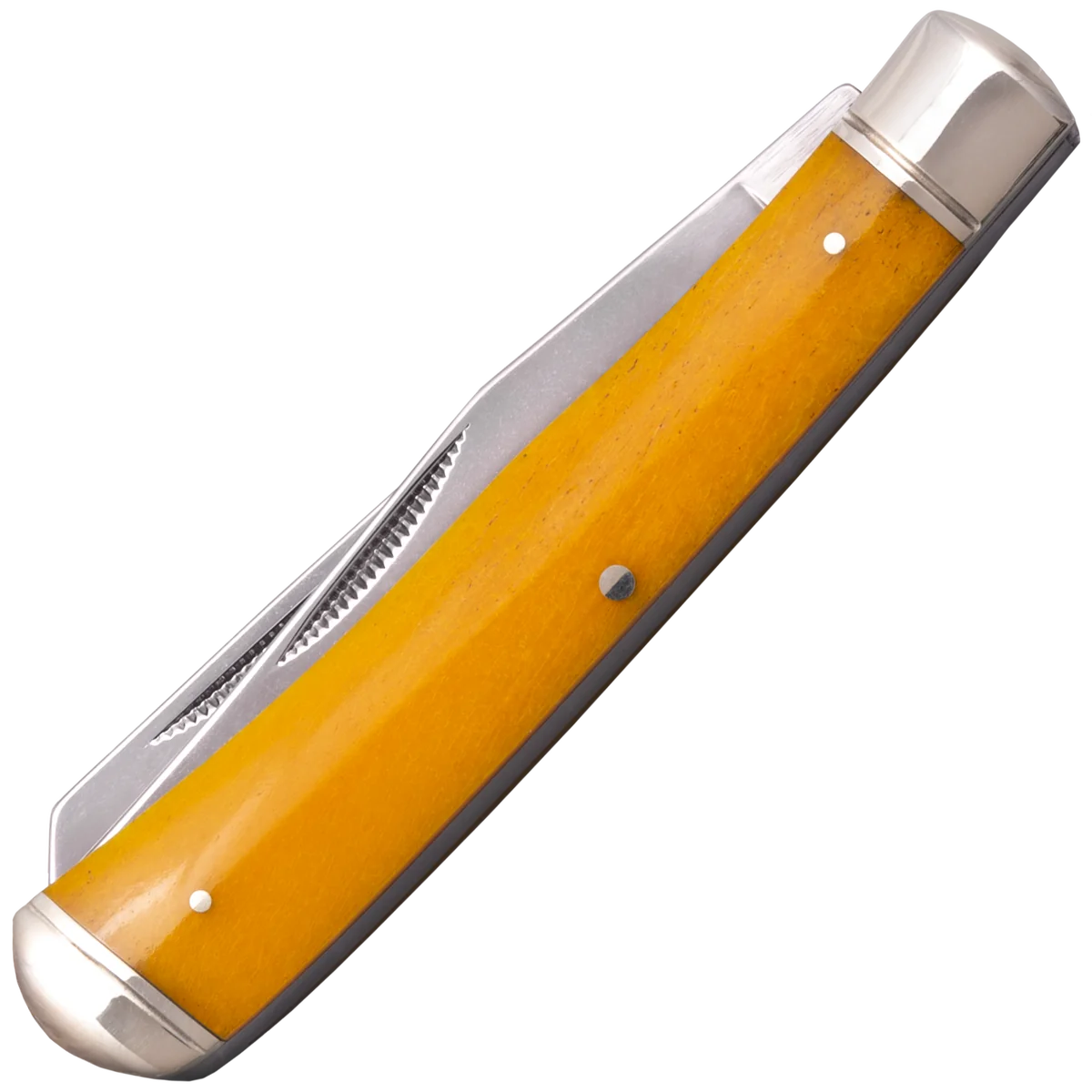 New for 2022 – the Cold Steel Trapper Series. These are Cold Steel's variations on the classic slip joint Trapper knives. They feature handles with authentic bone and are highlighted with polished metal bolsters. The rugged handles are substantially sized for hard work, even with gloved hands. They are constructed in a traditional Jack Knife pattern, with two polished blades: a clip point blade for piercing and cutting, and a spey blade for skinning and gutting, both folding out of one end of the knife's grip. Popular folklore has placed these knives as the preferred choice of rugged outdoorsman and frontier hunters, but their inherent practicality makes them useful for all sorts of chores, and they will fit in well in almost any environment from urban to rural. Measuring 4.125" when closed, the Trapper houses 2 blades, a 3.3" Clip Point and a 3.3" Spey Blade.