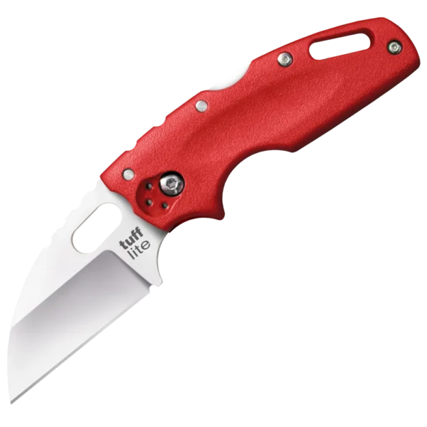 - Folding knife made from AUS-8A stainless steel with a satin finish in a wharncliffe style. Red Griv-Ex handles with lanyard hole and pocket clip. Uses cold steel's secure Tri-Ad locking mechanism.