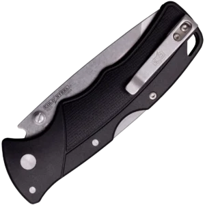 New from Cold Steel for 2022 – The Verdict folding knife collection! Available in a range of colours and blade styles this versatile range utilises sturdy 4116 Stainless Steel and texturised Glass Filled Nylon handles, topped off with Cold Steels famous Tri-Ad Lock! This model features a 3" Tanto blade in a stonewash finish for a rugged look. The handle is constructed from black Glass Filled Nylon and the textured finish and contouring on the handle guides the hand into place for a superior grip that won't let you down, even in wet conditions. The knife is finished with an ambidextrous thumb stud for quick and easy deployment and a black pocket clip.