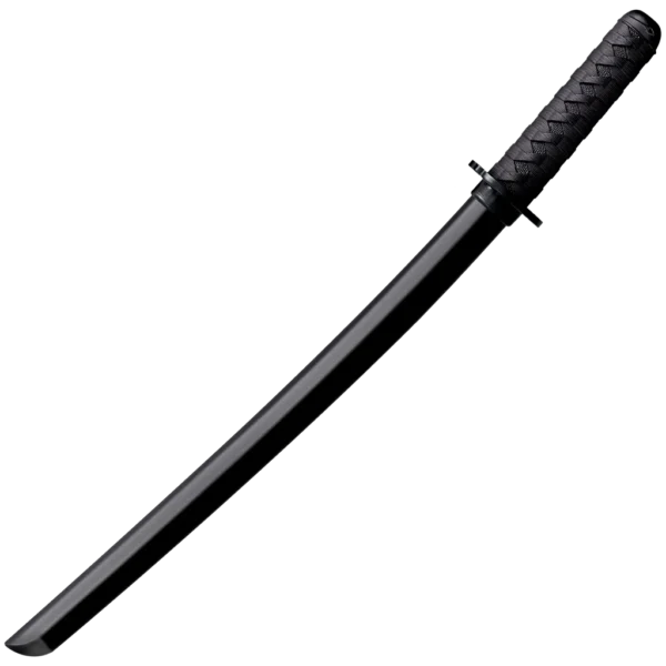 Our improved Cold Steel Japanese Training Swords are closely modeled after the world-famous Warrior series swords. Featuring an intricately detailed imitation cord wrap grip – molded in high impact polypropylene – they offer superior grip and comfort as well as more realistic training potential for the modern Martial Artist. Hundreds of years ago, the Japanese discovered a simple truth; that to become a good swordsman you'll have to practice, a great deal. To become a great swordsman you'll have to practice with a "live blade". And during the period between "good" and "great", you should spend your time building your skills and confidence enough to wield a razor sharp Katana safely and effectively. To accomplish this, the Japanese relied on a simple wooden sword called a "bokken" for much of their training. It was made from the super tough wood of the Japanese White Oak, a wood they called Kashi. The swords produced from this wood had the advantage of replicating the size, weight and feel of a steel sword. Authentic Kashi wood Bokkens are still used today, but are becoming quite costly. They also have the disadvantages, being made of wood, that they may rot, crack split or splinter. Cold Steel's solution to these dilemmas was to design a synthetic substitute, low in price and impervious to the elements. The Wakazashi Bokken is made of the heaviest grade polypropylene available and closely duplicate a real Katana or Wakazashi in length, size, weight and feel. While they're not quite as rigid as wood, they have the advantages of being virtually unbreakable and remarkably stiff and cut resistant.