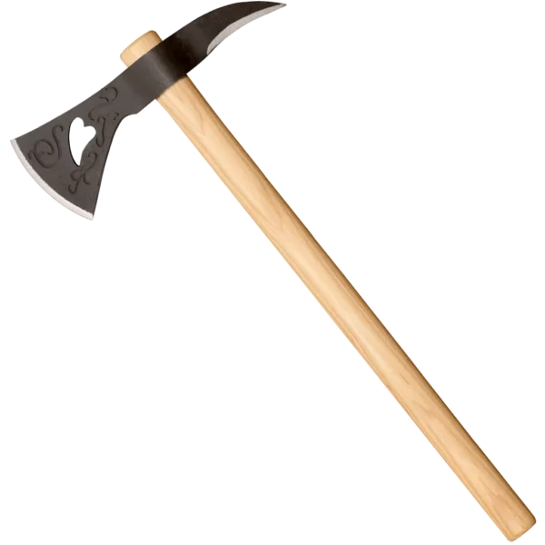 - The attractive American Hickory handle is complimented by the dark finish axe head featuring the characteristic heart-shaped cut-out.