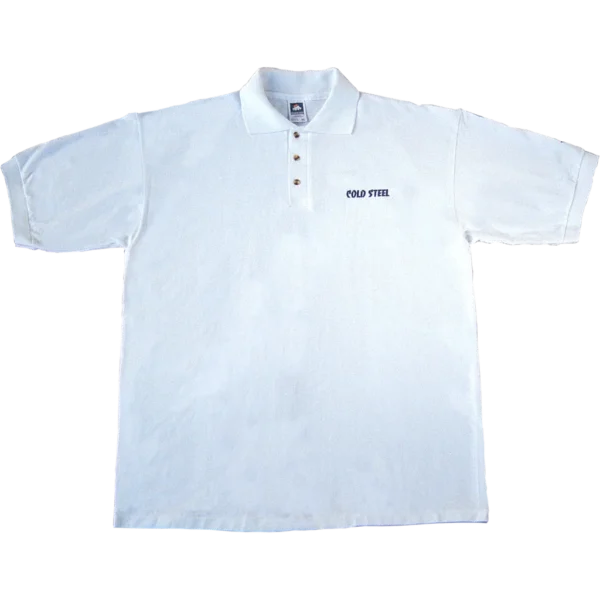 Want to look more upscale? Cold Steel now has Polo-Styled shirts. Comes with our distinctive logo embroidered on the left side of the chest. As an added feature, they have included an embroidered image of their Tanto just above the cuff of the left sleeve. 100% cotton pique, clean finished three-button placket, welt collar and cuffs with woodtone buttons. Made in USA.