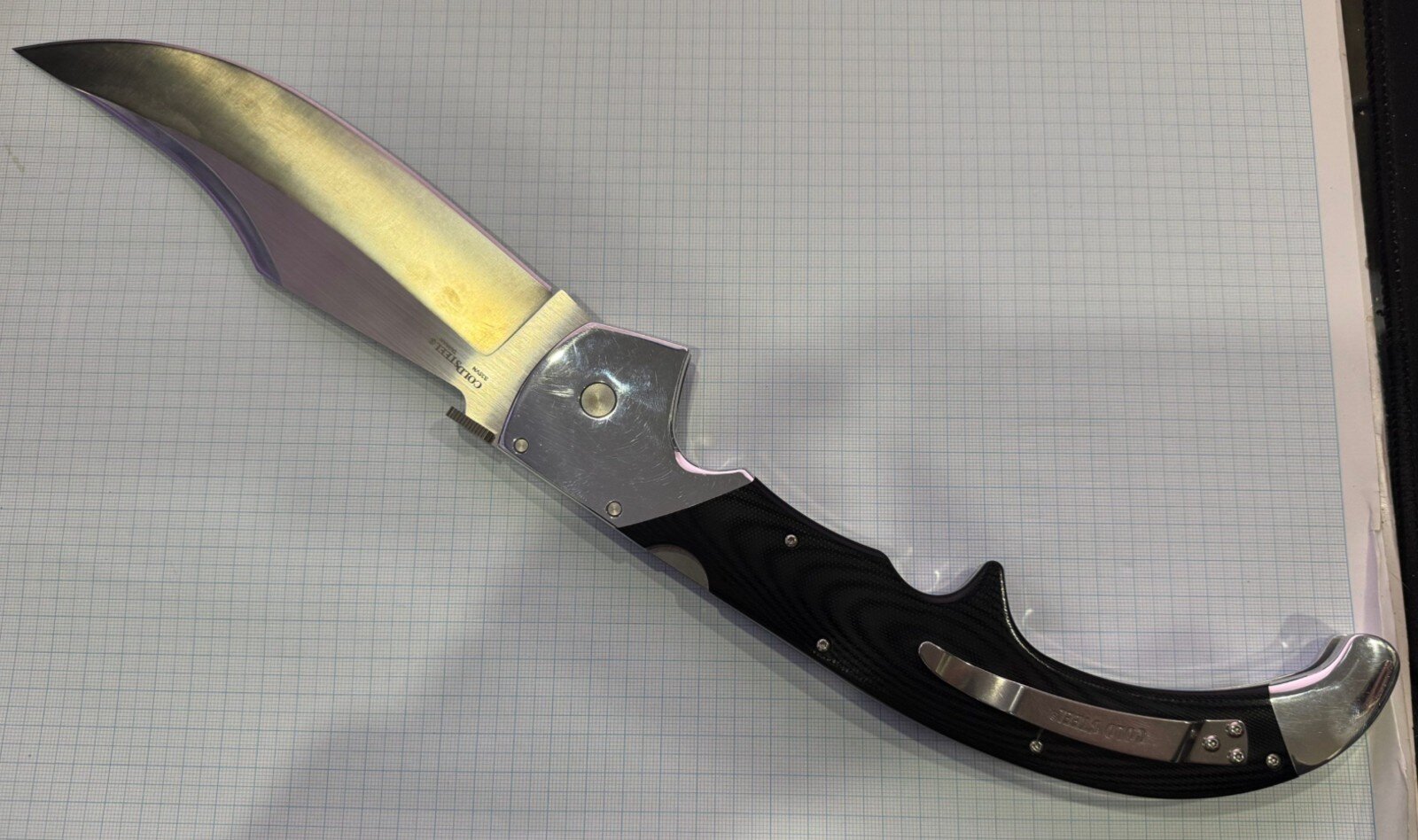 The Cold Steel Espada was inspired by the classical Navaja knives of Spain, but is utterly modern in both appearance and materials. A design collaboration between custom knife maker Andrew Demko and Cold Steel President Lynn C. Thompson, our Espadas are available in two sizes. The Espada’s beautiful blades are made from premium American S35VN Alloy Steel – chosen for its ability to not only take a super-fine cutting edge, but to hold it for an exceptionally long time.They also feature expertly polished G-10 scales and mirror polished 7075 Aluminum bolsters and frame. Each Espada is equipped with our patented Tri-Ad locking mechanism, proven to have amazing shock resistance and strength.