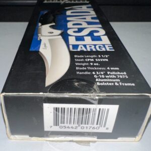 The Cold Steel Espada was inspired by the classical Navaja knives of Spain, but is utterly modern in both appearance and materials. A design collaboration between custom knife maker Andrew Demko and Cold Steel President Lynn C. Thompson, our Espadas are available in two sizes. The Espada’s beautiful blades are made from premium American S35VN Alloy Steel – chosen for its ability to not only take a super-fine cutting edge, but to hold it for an exceptionally long time.They also feature expertly polished G-10 scales and mirror polished 7075 Aluminum bolsters and frame. Each Espada is equipped with our patented Tri-Ad locking mechanism, proven to have amazing shock resistance and strength.
