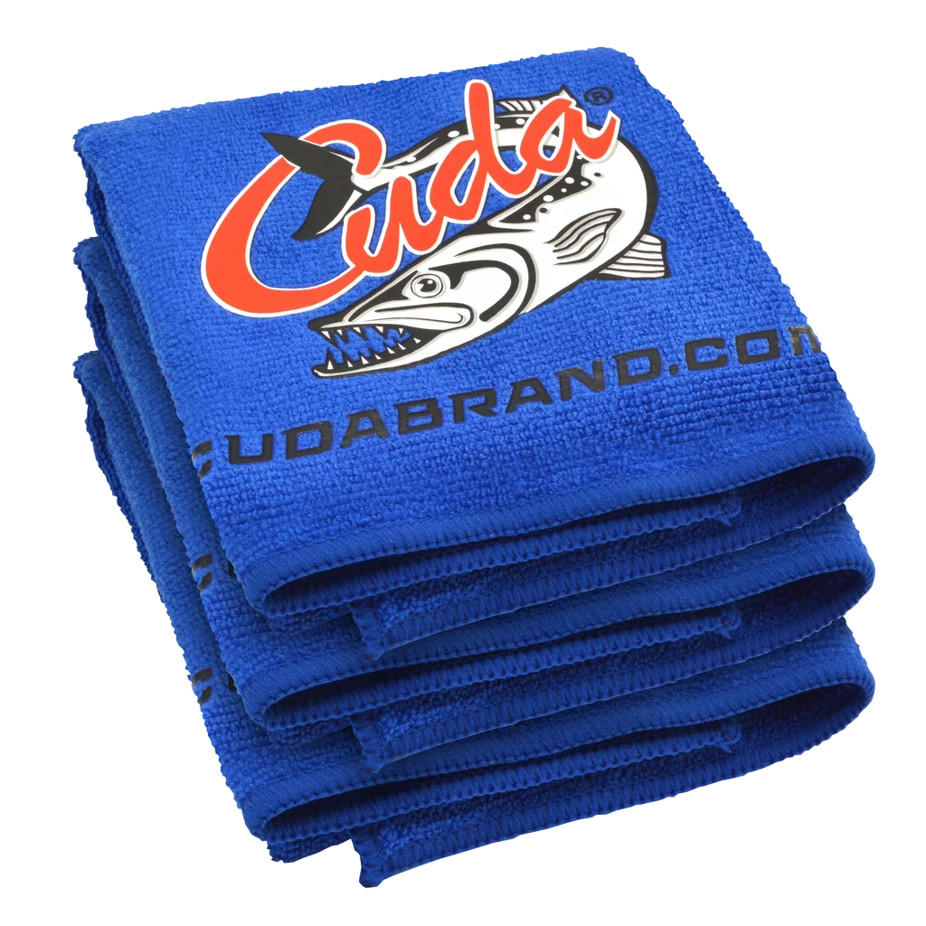 Pack of 3 heavy duty microfiber cleaning towels. Perfect for the boat! The Cuda Microfiber Towel is the perfect choice for on the water applications. Unlike other towels, the Cuda Microfiber Towel is stain and odor resistant, so it stands-up to the rigors of fishing