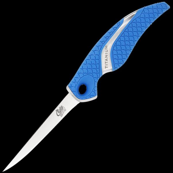 This 4" Cuda Fillet knife features precision ground edge and a Titanium Bonded, 4116 German Stainless Steel blade that will resist corrosion. Full tang construction for increased durability. Handle is Cuda scale pattern, non-slip grip.