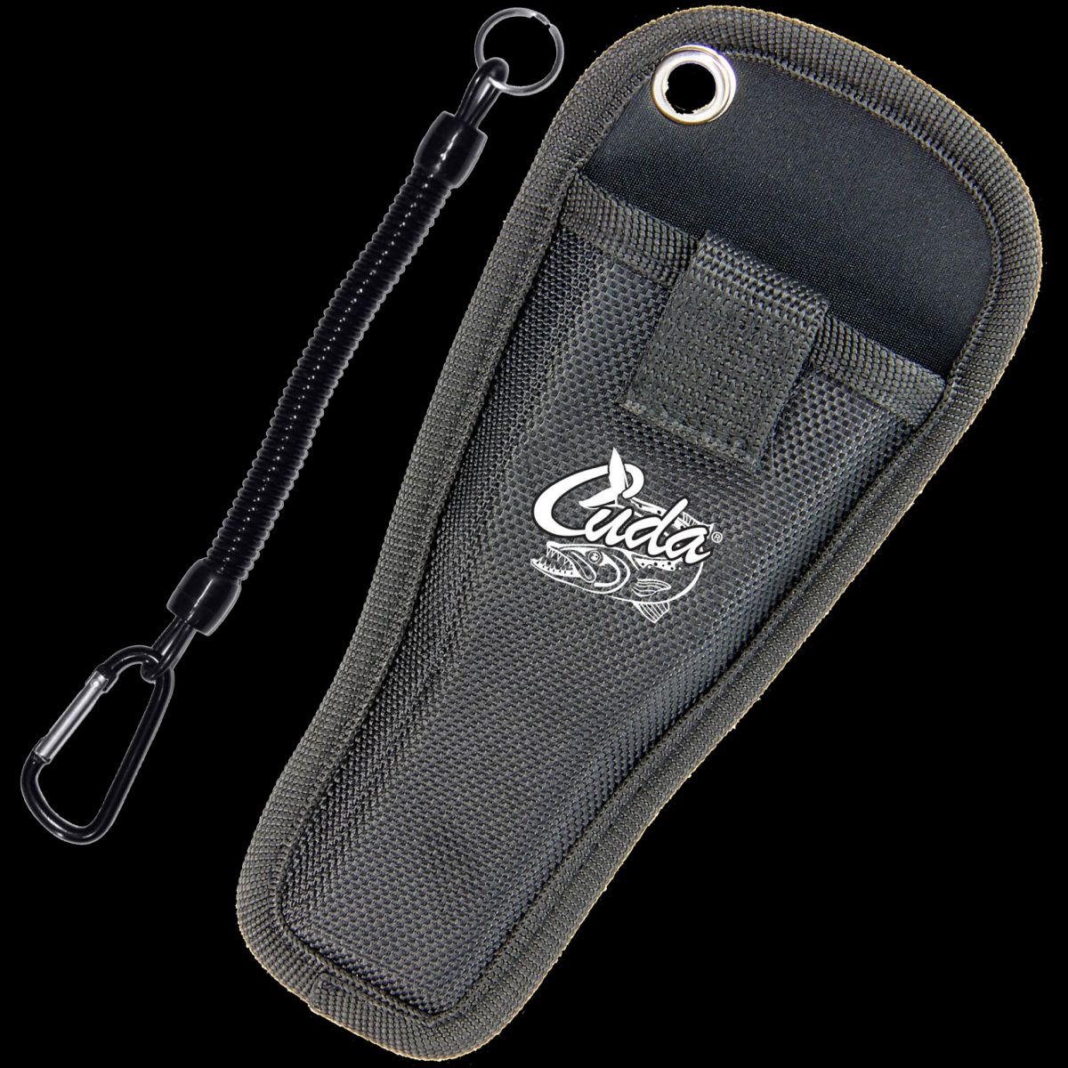 Cuda 7.5" Pliers featuring integrated Tungsten Carbide Wire, Mono & Braid Cutters. Full tang, Aluminum Alloy construction. High leverage Mono & Braid compound cutters. Handles are non-slip, Cuda scale pattern. Also includes ballistic nylon storage sheath and convenient lanyard.
