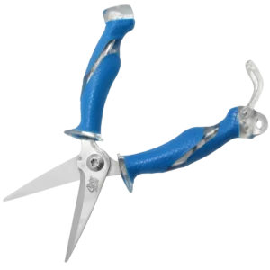 Great for cutting fishing line, rope, netting and fins! This Titanium Bonded 8" Snip has blades that are 3x harder than untreated steel and will stay sharper for a longer period of time. Features an internal spring system, integrated wire cutter and a micro-serrated edge for increased cutting performance. The full-tang construction is visible through the Cuda scale pattern, non-slip handle grips.