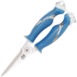 Great for cutting fishing line, rope, netting and fins! This Titanium Bonded 8" Snip has blades that are 3x harder than untreated steel and will stay sharper for a longer period of time. Features an internal spring system, integrated wire cutter and a micro-serrated edge for increased cutting performance. The full-tang construction is visible through the Cuda scale pattern, non-slip handle grips.