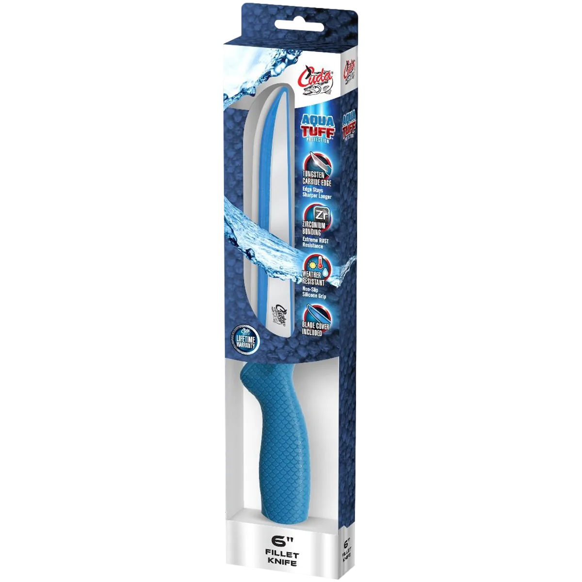 Cuda AquaTuff knives are the latest in Cuda's long line of enduring and hardworking line of fresh and saltwater fishing tools. Equipped with a robust, tungsten carbide edge with zirconium bonding, AquaTuff edges will outlast any and all conditions over time. To compliment the extremely durable blades, every AquaTuff knife is also built with weather-resistant, non-slip silicone grips. Complete with full blade covers for secure storage when not in use, Cuda AquaTuff knives are a must have for amateur and elite anglers alike.