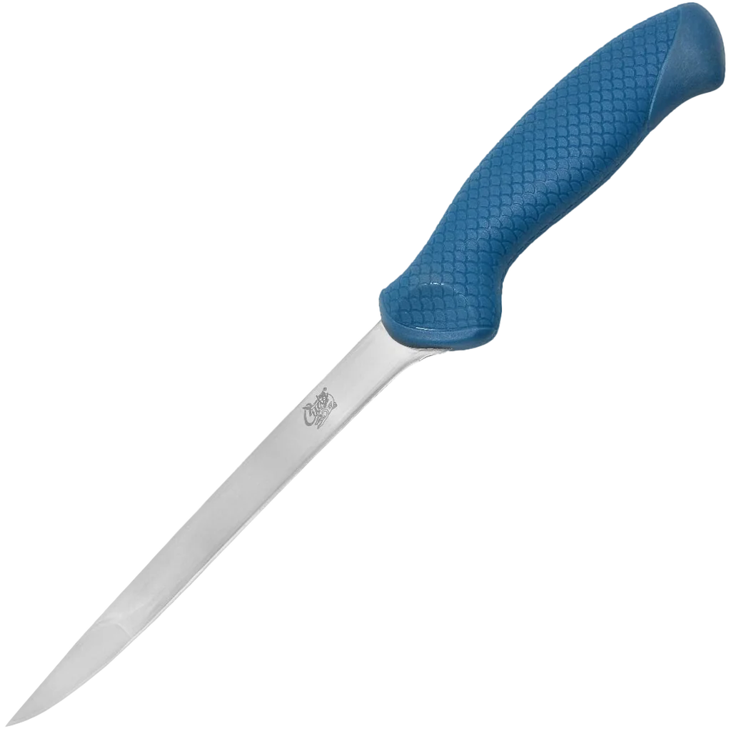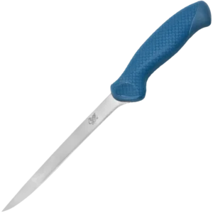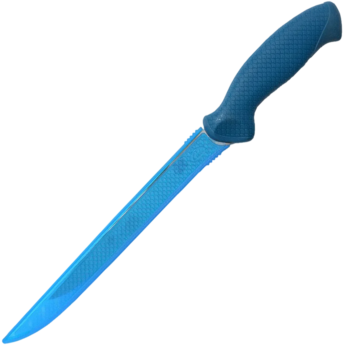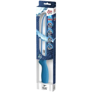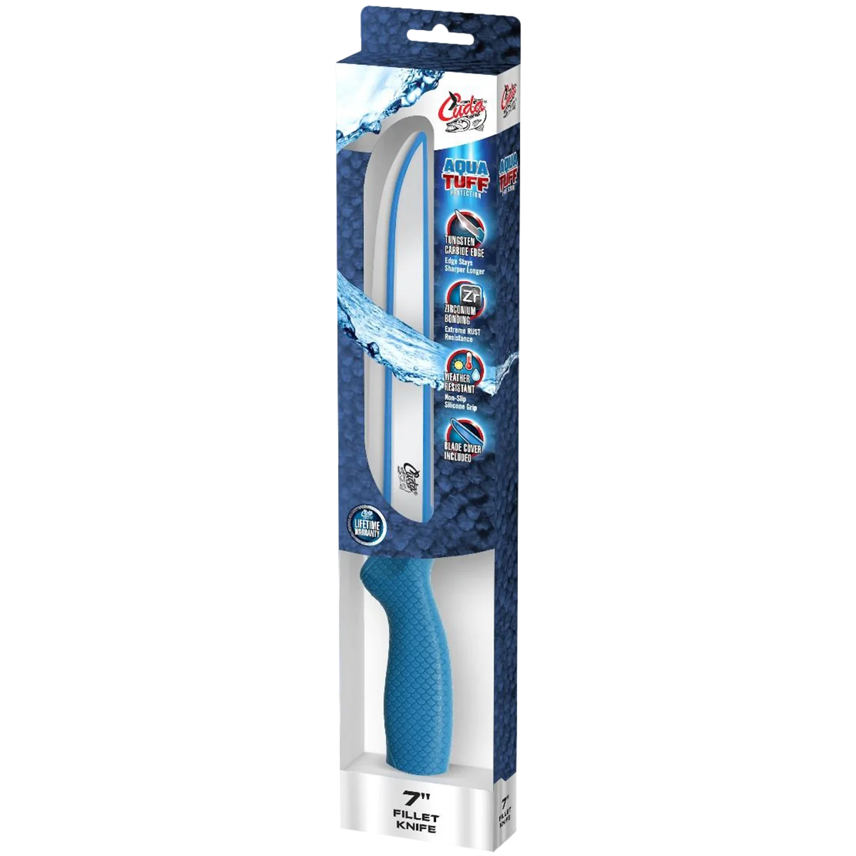 AquaTuff by Cuda is a knife line that offers the very best in edge retention and corrosion-resistance. The zirconium bonded blade provides excellent rust protection and the carbide edge gives the blade extra long-lasting sharpness. With a silicone handle that is weather-resistant and a non-slip secure grip. This 7" fillet knife features a flexible blade that is perfect for all-purpose filleting. Includes a lightweight blade cover for protection and safe storage.