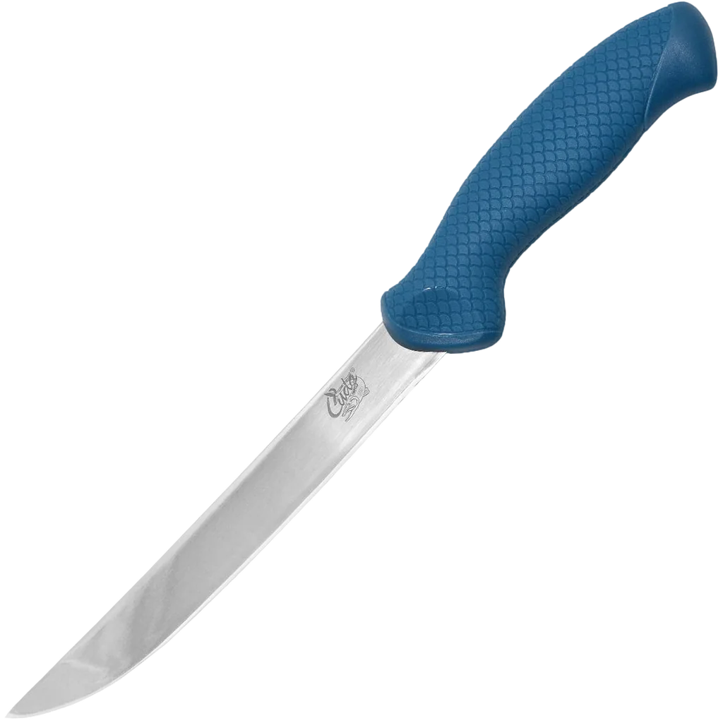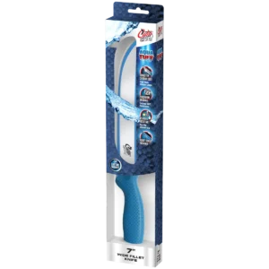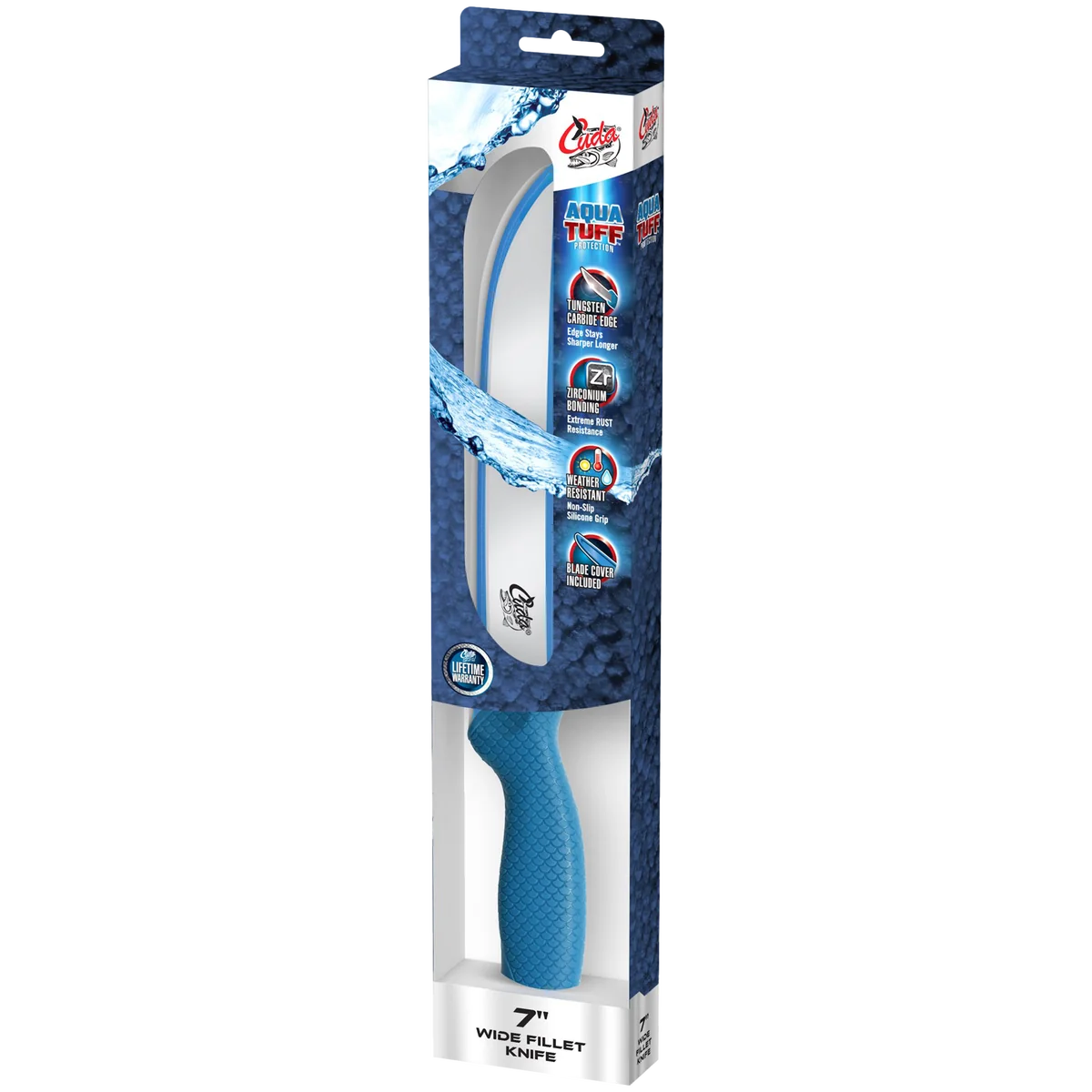 Cuda AquaTuff knives are the latest in Cuda's long line of enduring and hardworking line of fresh and saltwater fishing tools. Equipped with robust, tungsten carbide edges with zirconium bonding, AquaTuff edges will outlast any and all conditions over time. To compliment the extremely durable blades, every AquaTuff knife is also built with weather-resistant, non-slip silicone grips. Complete with full blade covers for secure storage when not in use, Cuda AquaTuff knives are a must have for amateur and elite anglers alike. This 7" fillet knife features a wide, semi-flexible blade that is perfect for filleting and cutting tough fish.