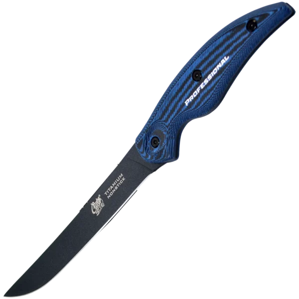 Cuda Professional Knives are built for the serious fisherman. With Titanium Bonded, Non-Stick USA 40A Carpenter Steel, these knives provide the ultimate level of edge retention and corrosion-resistance. Cuda 18126 Titanium Non-Stick 7 in. Professional Wide Fillet Knife Features: 40A Corrosion Resistant Stainless Carpenter Steel Blade Micarta Handle Precision Ground Edge Full-Tang Stainless Steel Construction Semi-Flex Wide Blade Hard Molded Sheath