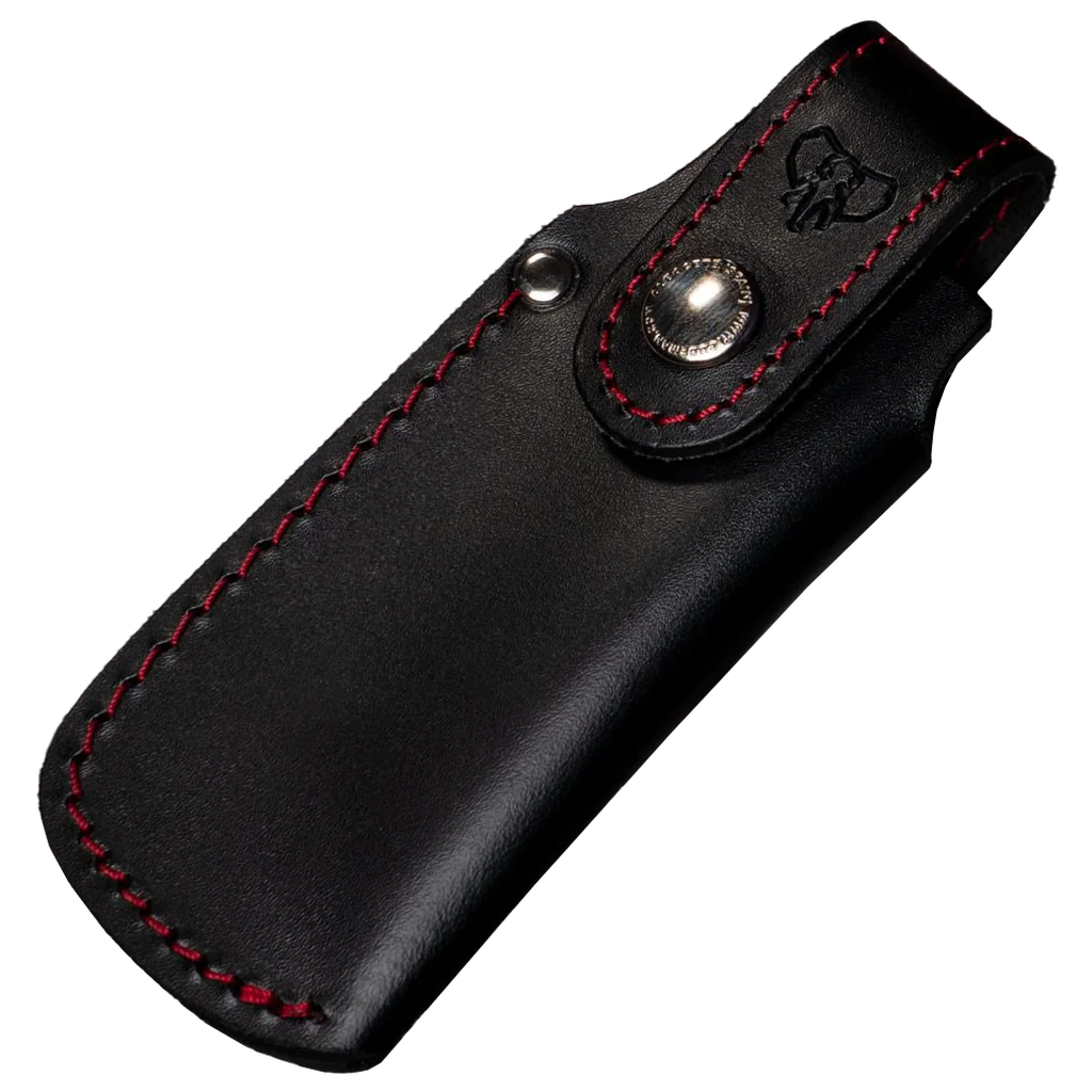La funda de navaja 602 from Cudeman is a refined leather sheath designed to protect and present your pocket knife with style. Made in choice black or brown leather and finished with embossed detailing, it delivers a neat, timeless appearance suitable for everyday carry and storage. The finish and stitching options provide a handcrafted aesthetic without compromising durability. This sheath accommodates blades up to 13 cm long and 5.5 cm wide and secures with a reliable snap fastener (broche). With stitch colour options in red, orange or brown and a total weight of just 36 g, La funda de navaja 602 combines practical protection with a lightweight, compact profile that complements a wide range of knives and personal styles.