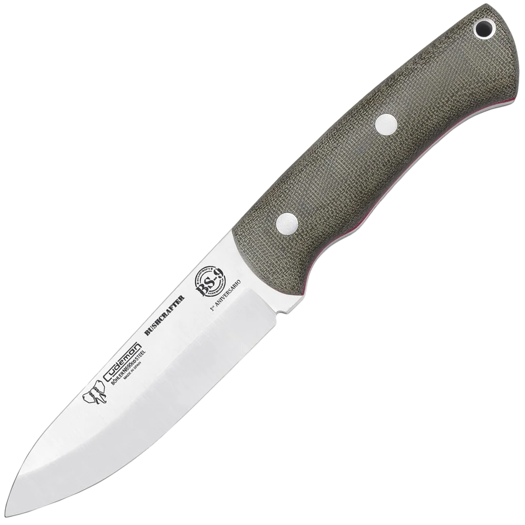 The Cudeman Bushcrafter truly lives up to its name. Perfect for bushcrafting, and hard-wearing enough to handle anything. A satin-finished N690Co Stainless Steel drop point blade, paired with a green canvas handle, makes for a cool aesthetic, whist keeping functionality and performance at the forefront. Includes a leather sheath and survival kit.