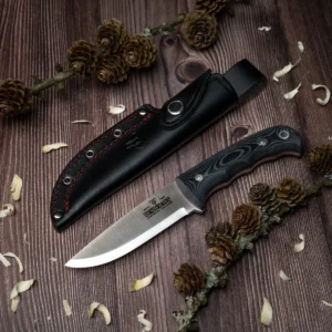 - Black leather sheath included (approx. 70 g) for safe carry and blade protection.