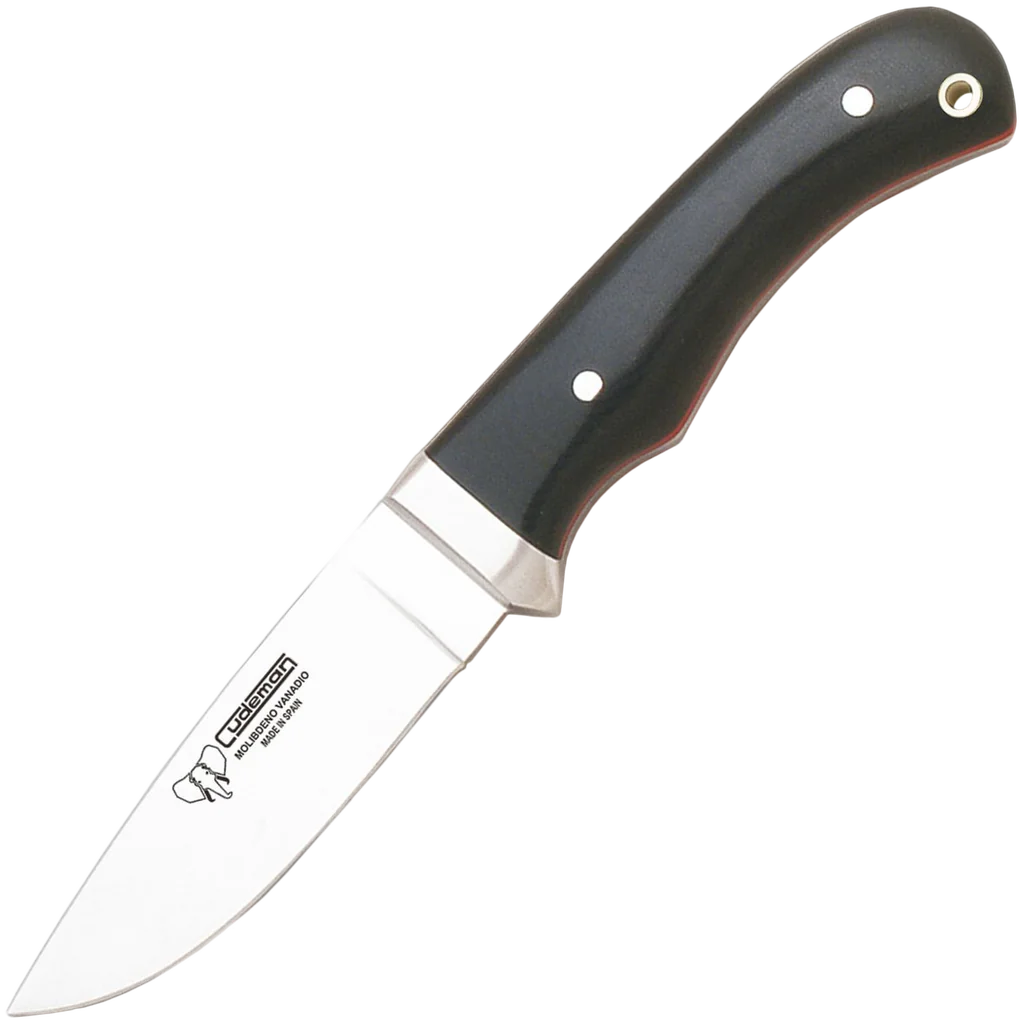 The Spanish cutlery manufacturer Cudeman Knives has been making quality hunting, sporting, survival and folding knives for more than 25 years. They use high quality steels such as Bohler N695, MOVA 58 and a variety of handle materials including stag, olivewood, cocobolo and pakkawood. The 116-M is a hard wearing bushcraft knife constructed from MOVA Stainless Steel with a satin finish. The handle is made from polished black micarta with red spacers and completed with aluminum rivets, polished ferrule and a hole for a lanyard cord.