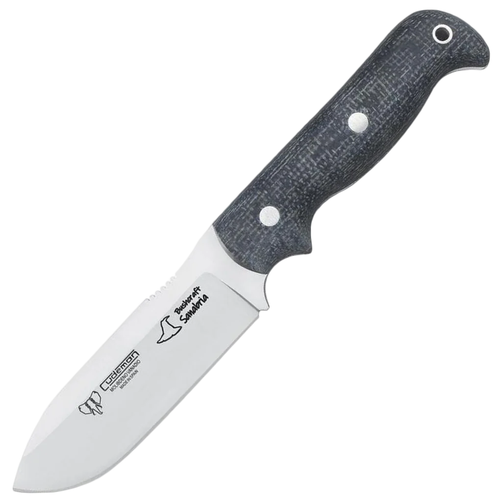 - 4.5" Blade (11.5 cm) ground drop-point — 4 mm thick and 3.5 cm wide with a choil for controlled, fine cutting and a sawback on the spine.