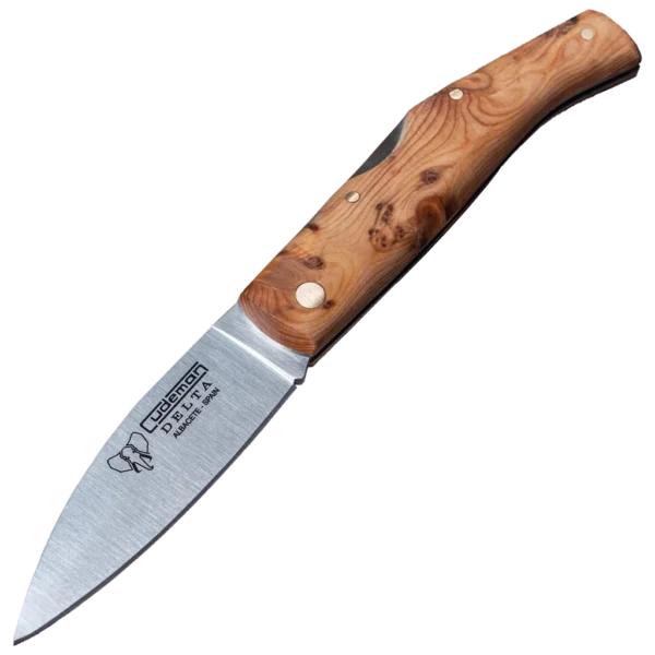Introducing the Cudeman Delta model 344-GBF penknife – an improved version of the classic camper's knife with rear button lock. The 8.5 cm Molibdeno Vanadio steel blade features a satin finish and drop-point tip, with a thickness of 2.5 mm and a blade width of 2.5 cm. The handle is made of higth quality aromatic juniper, providing a secure and comfortable grip, with a length of 11 cm. The knife's overall length is 19.5 cm and it weighs approximately 95 g. The Delta model 344-GBF's blade is ideal for a range of outdoor activities, including cutting up food, preparing wood for kindling and crafting. The knife's compact design makes it easy to carry with you on hikes, camping trips, and other outdoor adventures. The rear button lock ensures the blade stays securely in place during use, providing a safe and hassle-free cutting experience.