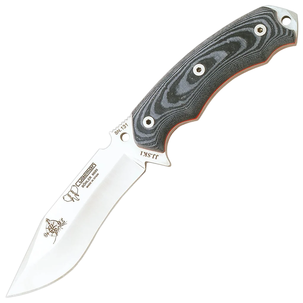 - Böhler N-695 stainless steel, hardened to 59–60 HRC for strong edge retention and good corrosion resistance without sacrificing toughness.