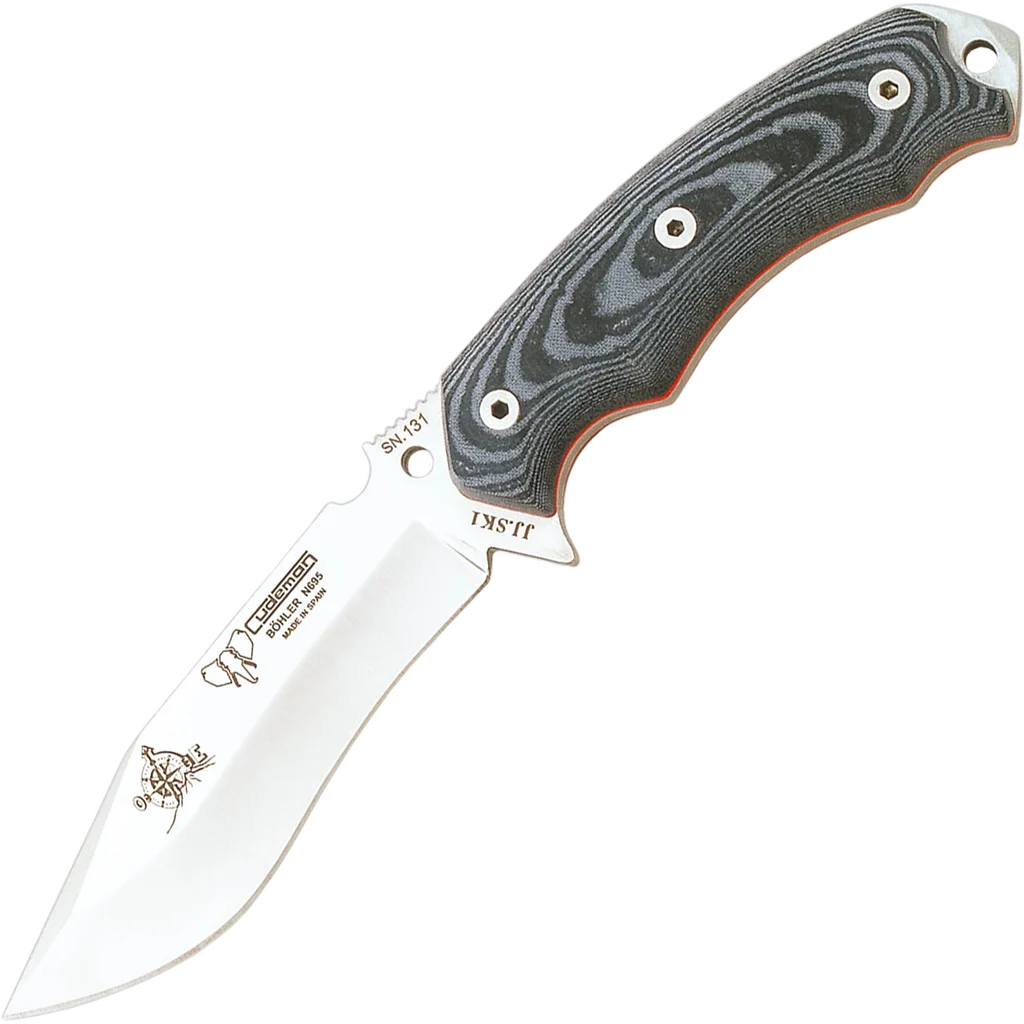 - Böhler N-695 stainless steel, hardened to 59–60 HRC for good edge retention and corrosion resistance in field conditions.