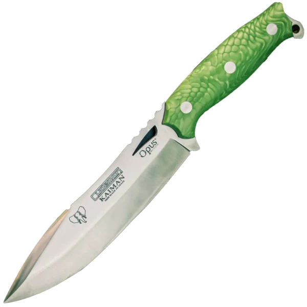 THE CUDEMAN KAIMAN: A STORY OF DESIGN AND QUALITY. The Cudeman Kaiman has been designed and manufactured in collaboration with Opus Knives for outdoor, bushcraft and general field use. This model is a reliable companion for people who enjoy bushcraft, outdoor activities and other utility tasks. Made from high-quality Böhler N695 steel and fitted with a green Juma handle, this knife is a practical tool for professionals and enthusiasts seeking durability and consistent performance on expeditions. The Kaiman is built to handle demanding tasks. The Cudeman Kaiman stands out for its ergonomic design and its 16-centimetre blade with 59/60 HRc. Its Böhler N695 steel offers strong resistance to corrosion and a long-lasting edge, providing dependable performance in a range of conditions. This knife is suitable for tasks such as wood carving, food preparation and shelter construction. Its versatility and robustness make it a useful item for a survival kit or bushcraft backpack. In short, the Cudeman Kaiman is a reliable and versatile choice for those looking for quality, appearance, strength and adaptability in a cutting tool.