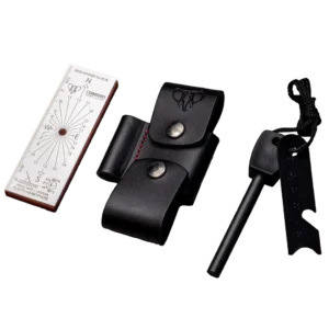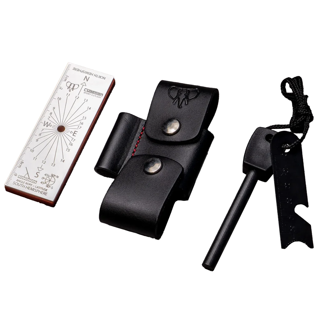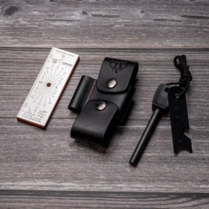 This is a complete black leather adapter finished with red thread and supplied with a piedra espejo (mirror stone) and pedernal (flint). The set provides the leather mounting and the two essential components so it can be used immediately as a replacement or spare part for compatible Cudeman fire-starter units. Designed to match the original fittings, the adapter is intended to be straightforward to install and maintain. It is compatible with multiple Cudeman references (see compatibility list in the specifications) and makes a practical spare or accessory for keeping your fire-starter components together and ready for use.