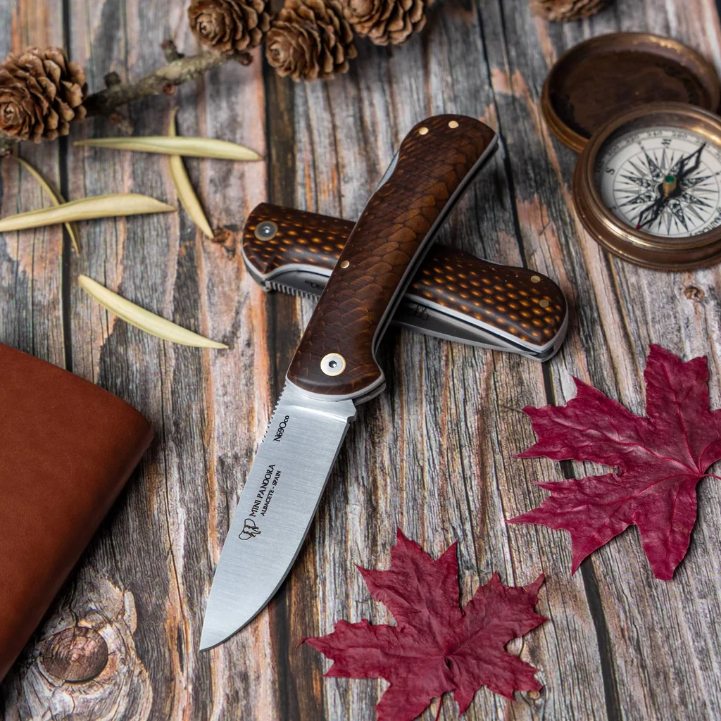 - 3.15" Blade (8 cm) drop-point, satin finish — ground geometry, 3 mm thick and 2 cm wide for robust cutting performance and control.