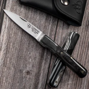 • Features a stylish bull horn handle, and MoVa blade