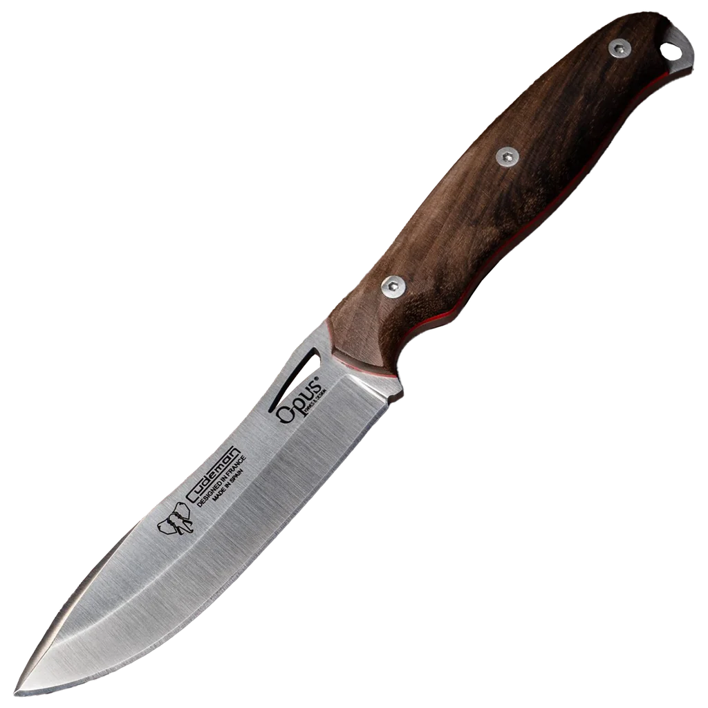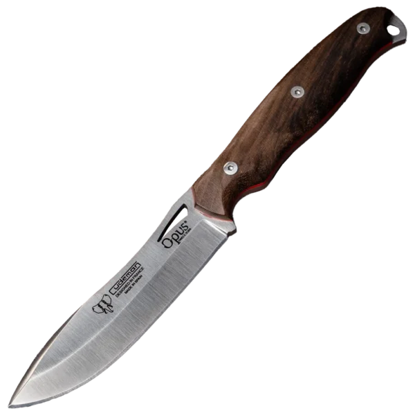 - Full-tang construction with 11.5 cm satin walnut handle and red spacer; secured by a stainless allen screw and brass internally threaded ferrule for durable, dependable assembly.