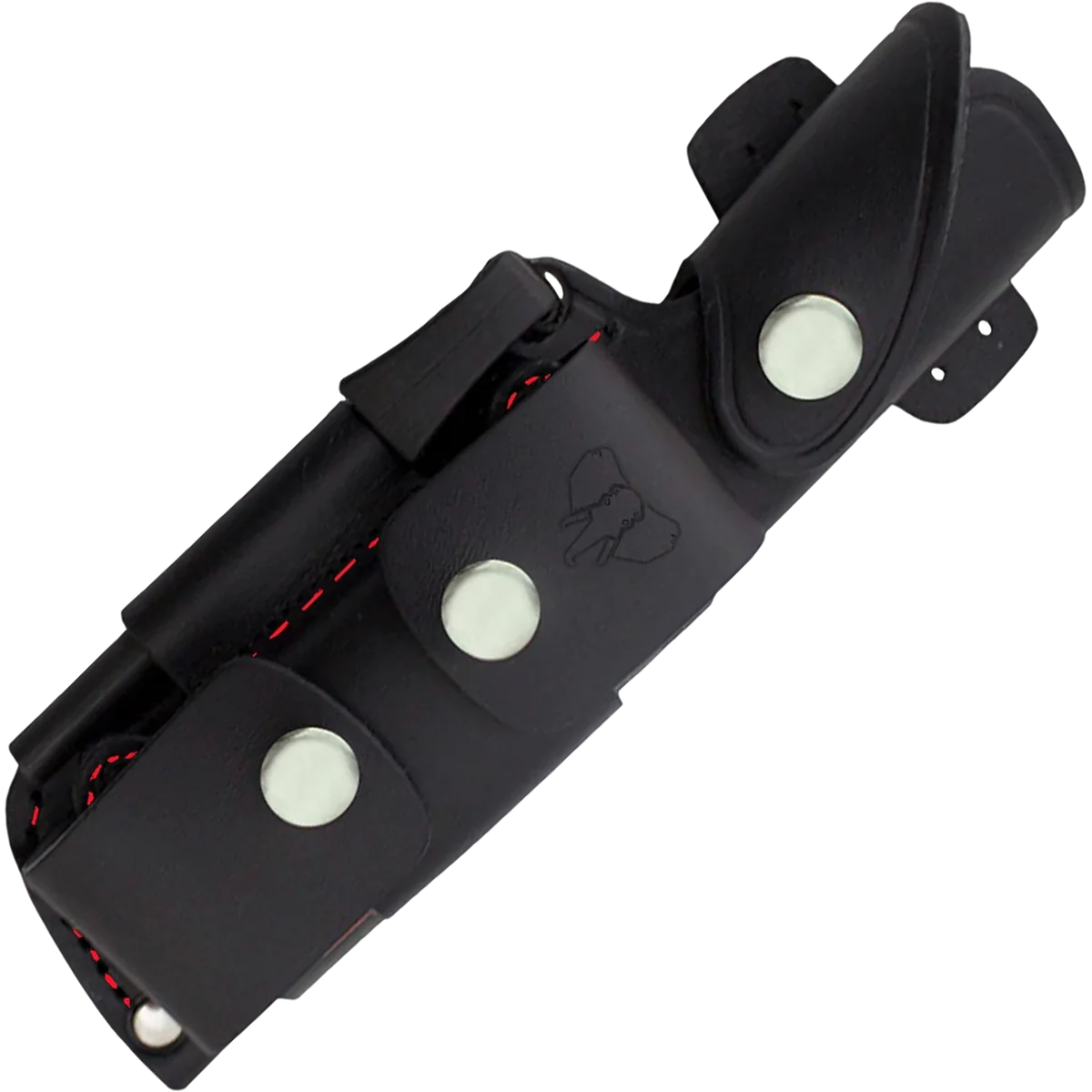 - Supplied multi‑position black leather sheath (approx. 120 g) with adapter 644‑N kit — sharpening stone, signal mirror, sundial, ferrocerium striker and 2.80 m red paracord included.