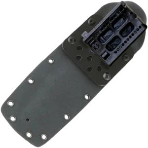 - Custom‑moulded black Kydex sheath (included) with Tek-Lock adapter — each sheath is individually formed to this knife for a precise fit; sheath weight approx. 230 g.