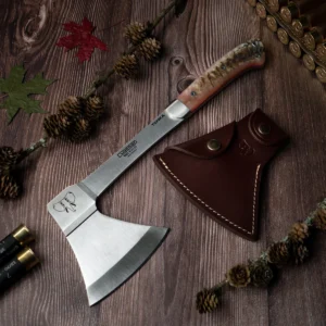 - Supplied with a brown leather sheath (approx. 90 g) for safe storage and transport; complete axe weight approx. 690 g.