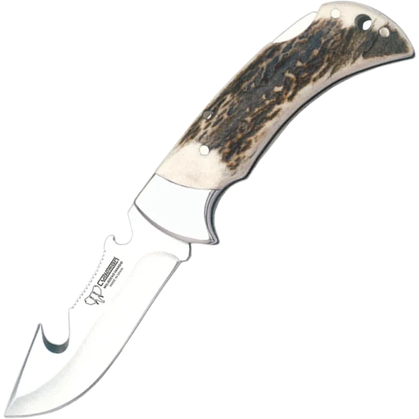 The Cudeman folding knife pairs traditional craftsmanship with dependable materials to deliver a compact, practical tool. Its polished natural antler handle is anchored with a brass rivet and finished with a polished A‑304 stainless-steel virola, offering a comfortable hold and a classic appearance. The robust back-lock mechanism keeps the blade secure in use, while the overall length of 20.5 cm and weight of approximately 180 g give it a solid, well-balanced feel. The 9 cm hollow-ground blade in molybdenum‑vanadium steel features a satin finish and a skinner-style point designed for precise, controlled slicing. Heat-treated to around 54–56 HRC and 3 mm thick, the blade delivers a reliable blend of cutting performance and serviceability. Extras include a lanyard hole and an integrated bottle opener; a brown leather sheath (Ref. 603‑C) is available separately (not included).
