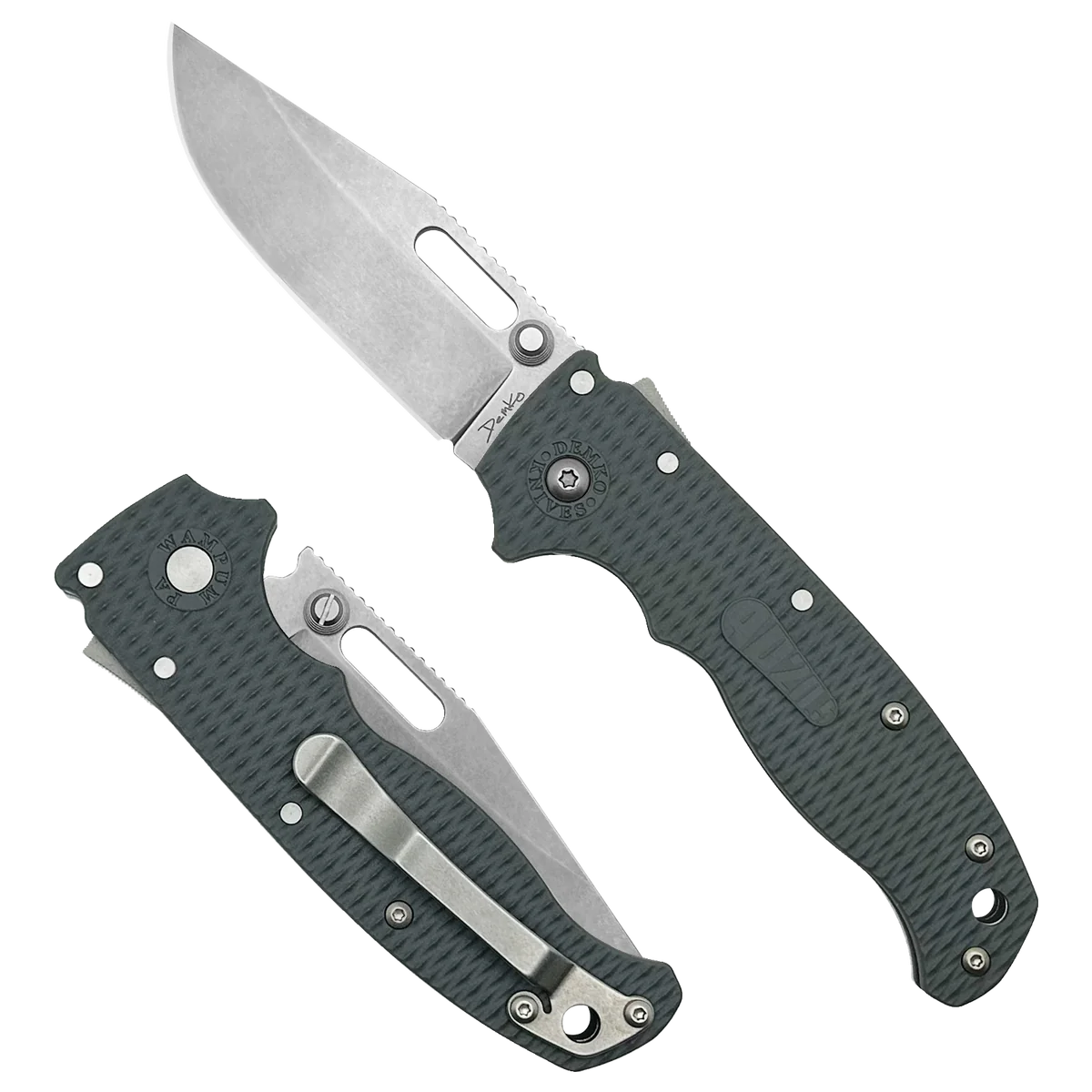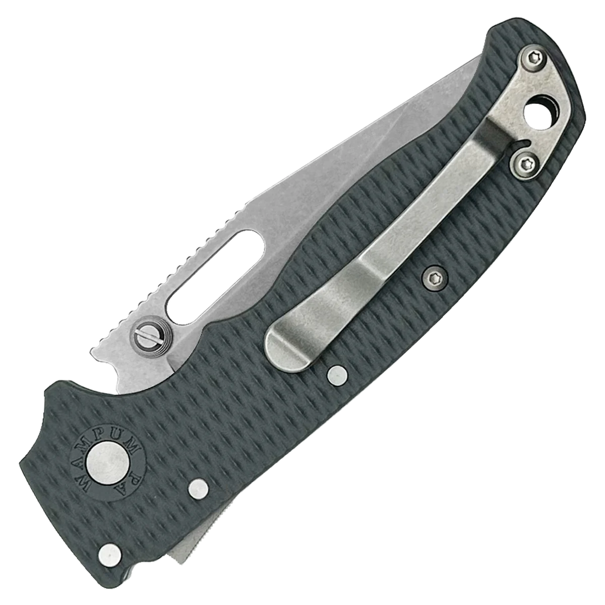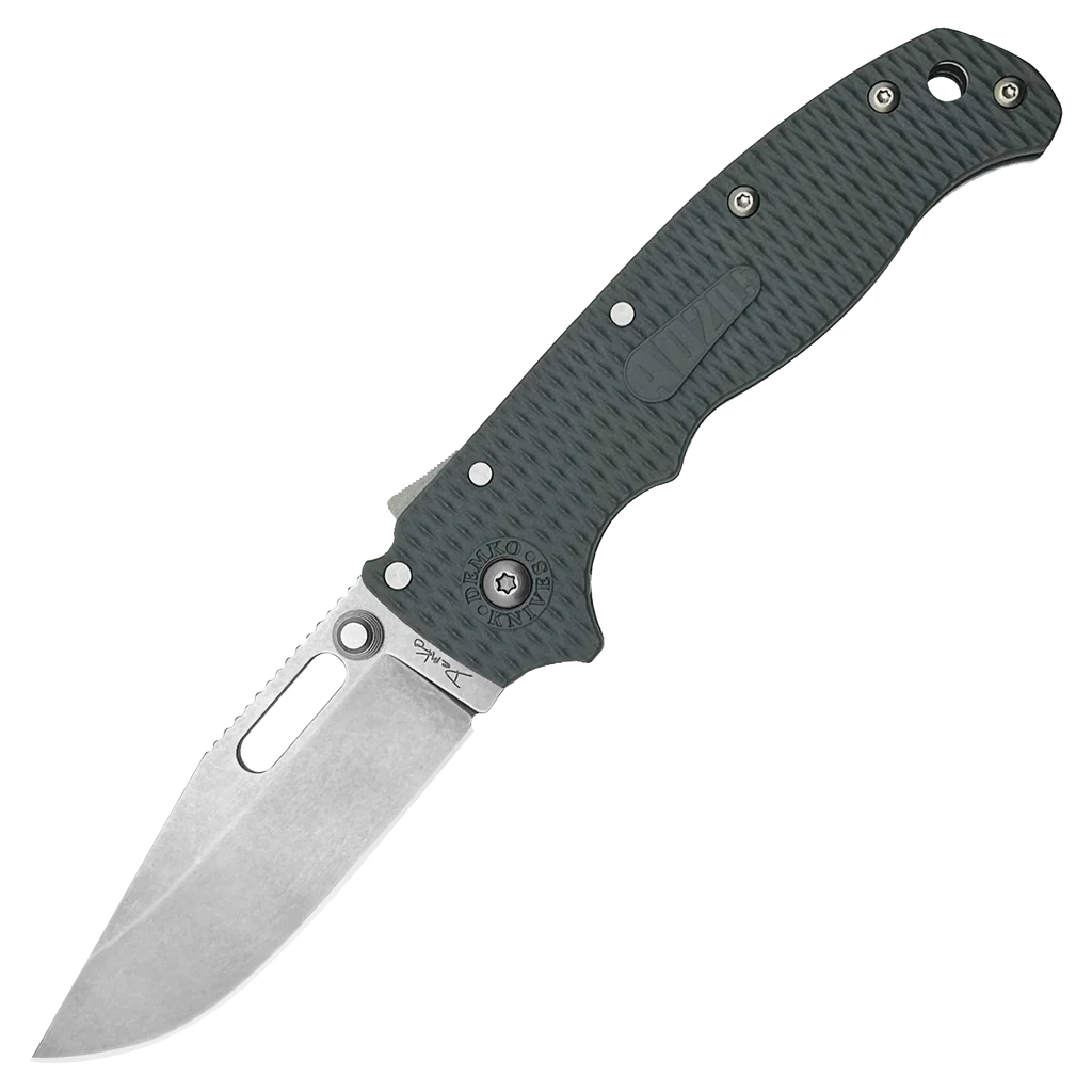 The AD20.5 by Demko Knives features the all-new Shark-Lock™. The Shark Lock mechanism is situated on the spine of the knife and operated with a ramp-like ‘fin.’ Available in Clip Point or Sharks Foot, this knife features ball bearings on the pivot pin, steel liners, and a left-handed pocket clip included.