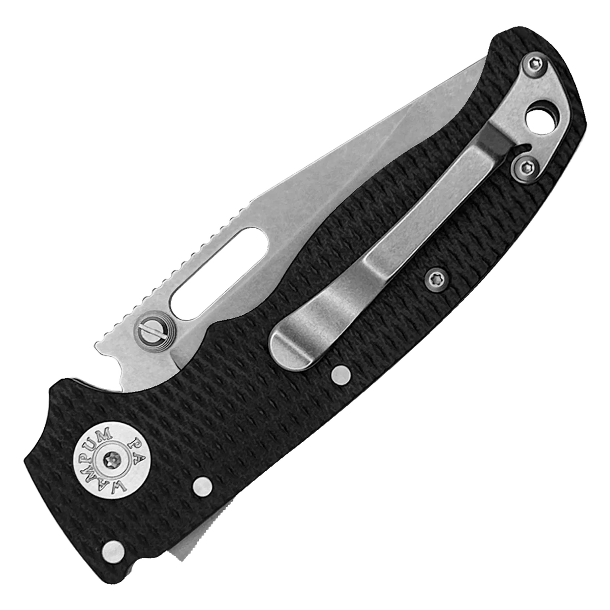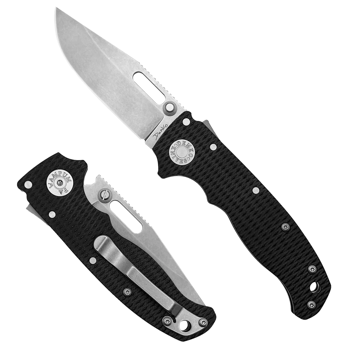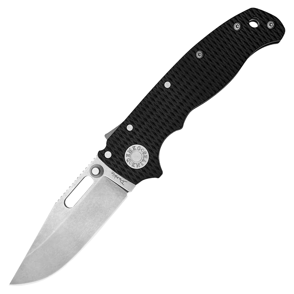 The AD20.5 by Demko Knives features the all-new Shark-Lock™. The Shark Lock mechanism is situated on the spine of the knife and operated with a ramp-like ‘fin.’ Available in Clip Point or Sharks Foot, this knife features ball bearings on the pivot pin, steel liners, and a left-handed pocket clip included.