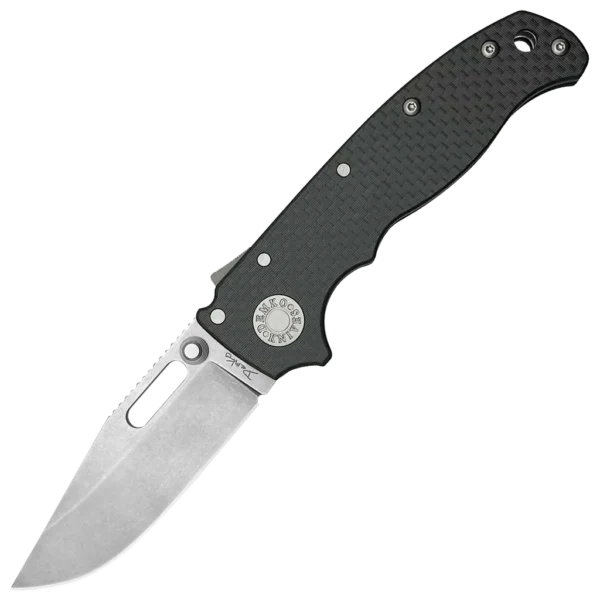 The AD20.5 by Demko Knives features the all-new Shark-Lock™. The Shark Lock mechanism is situated on the spine of the knife and operated with a ramp-like ‘fin.’ Available in Clip Point or Sharks Foot, this knife features ball bearings on the pivot pin, steel liners, and a left-handed pocket clip included.