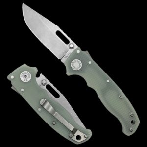 The AD20.5 by Demko Knives features the all-new Shark-Lock™. The Shark Lock mechanism is situated on the spine of the knife and operated with a ramp-like ‘fin.’ Available in Clip Point or Sharks Foot, this knife features ball bearings on the pivot pin, steel liners, and a left-handed pocket clip included.