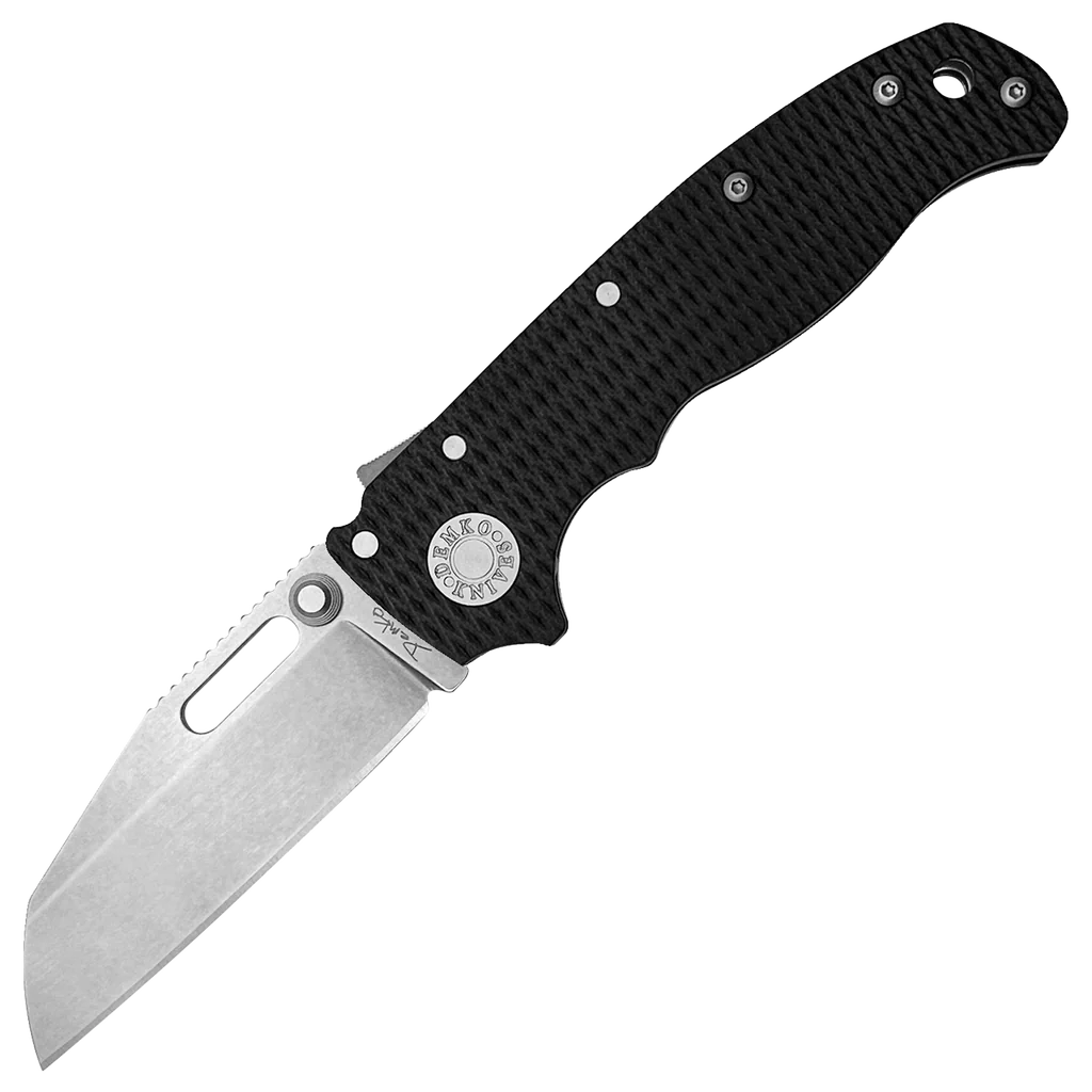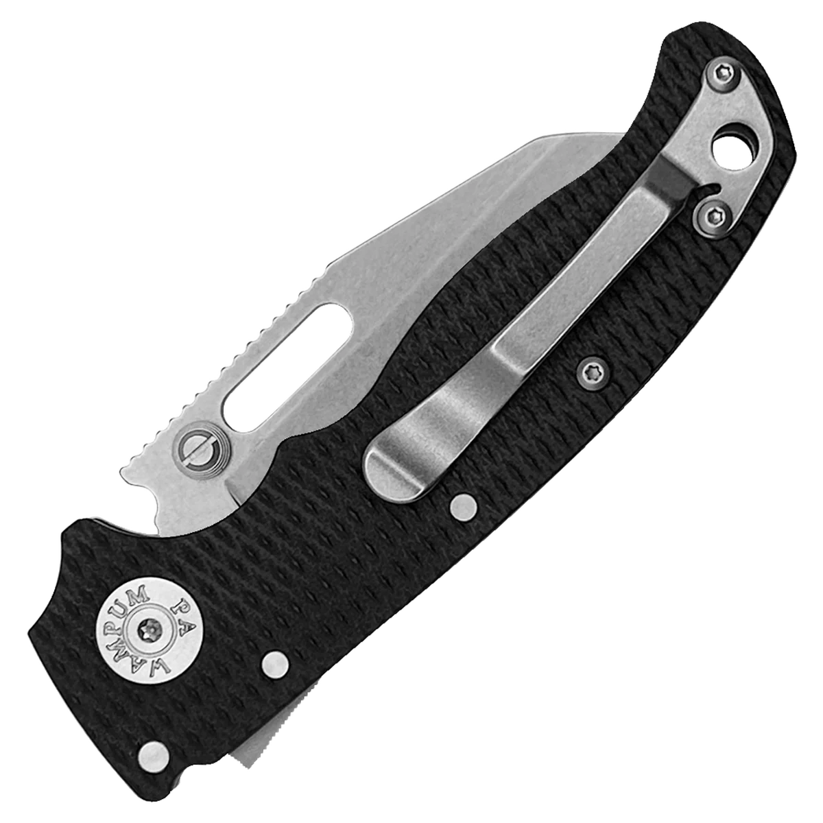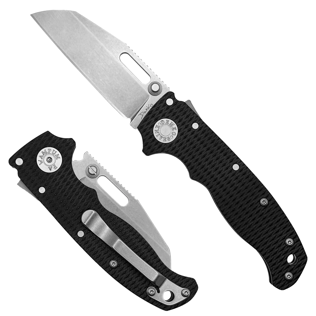 The AD20.5 by Demko Knives features the all-new Shark-Lock™. The Shark Lock mechanism is situated on the spine of the knife and operated with a ramp-like ‘fin.’ Available in Clip Point or Sharks Foot, this knife features ball bearings on the pivot pin, steel liners, and a left-handed pocket clip included.
