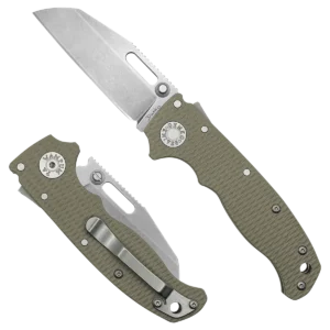 The AD20.5 by Demko Knives features the all-new Shark-Lock™. The Shark Lock mechanism is situated on the spine of the knife and operated with a ramp-like ‘fin.’ Available in Clip Point or Sharks Foot, this knife features ball bearings on the pivot pin, steel liners, and a left-handed pocket clip included.