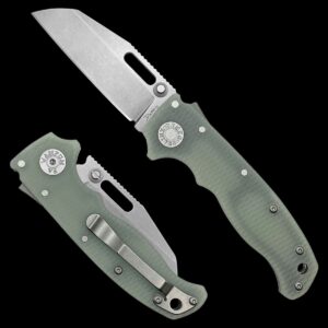 The AD20.5 by Demko Knives features the all-new Shark-Lock™. The Shark Lock mechanism is situated on the spine of the knife and operated with a ramp-like ‘fin.’ Available in Clip Point or Sharks Foot, this knife features ball bearings on the pivot pin, steel liners, and a left-handed pocket clip included.